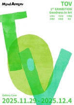 TOV: Goodness in Art2025.11.29 - 12.04갤러리코브 Gallery CoveTOV는 ‘좋음’ ’선함‘ ’아름다움‘을 뜻하며, 이번 전시를 통해 그 “좋음”의 의미를 오늘의 예술 속에서 다시 찾아보는 여정이다.삶의 작은 순간과 자연의 생명, 그리고 사람의 마음 안에 깃든 선한 아름다움을 신경숙,이규영,이태림,조혜전,최정문,희은 여섯 명의 작가가 각자의...