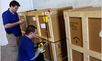 Employees of Stebich Ridder International, an art-shipping company, preparing a crate.